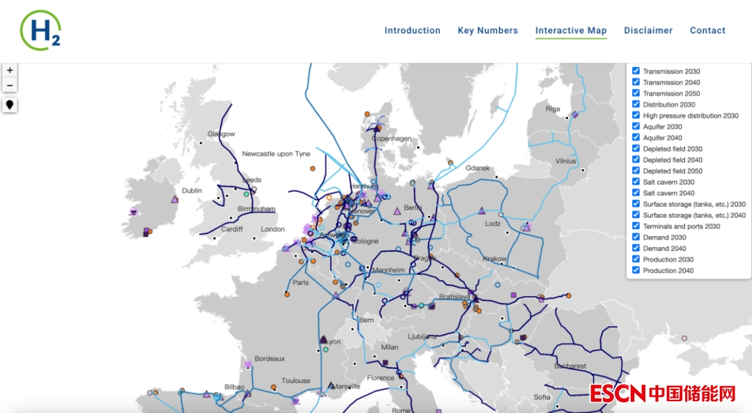 歐洲天然氣運輸系統(tǒng)運營商網(wǎng)絡(luò) (European Network of Transmission System Operators for Gas,簡稱 ENTSOG)、歐洲氫能骨干倡議(European Hydrogen Backbone)以及GIE、CEDEC、Eurogas、GEODE、GD4S等機構(gòu)啟動了一個自下而上的過程,收集所有相關(guān)的氫能基礎(chǔ)設(shè)施項目,目的是將數(shù)據(jù)呈現(xiàn)在一個交互式、用戶友好且可供公眾訪問的歐洲氫能地圖,供利益相關(guān)者和政策制定者使用。交互式氫能基礎(chǔ)設(shè)施地圖匯集了天然氣輸送系統(tǒng)運營商(TSO)、配送系統(tǒng)運營商、存儲系統(tǒng)運營商和液化天然氣系統(tǒng)運營商的氫能視角和項目,以及在整個價值鏈上開發(fā)聯(lián)合體項目的第三方推動者。