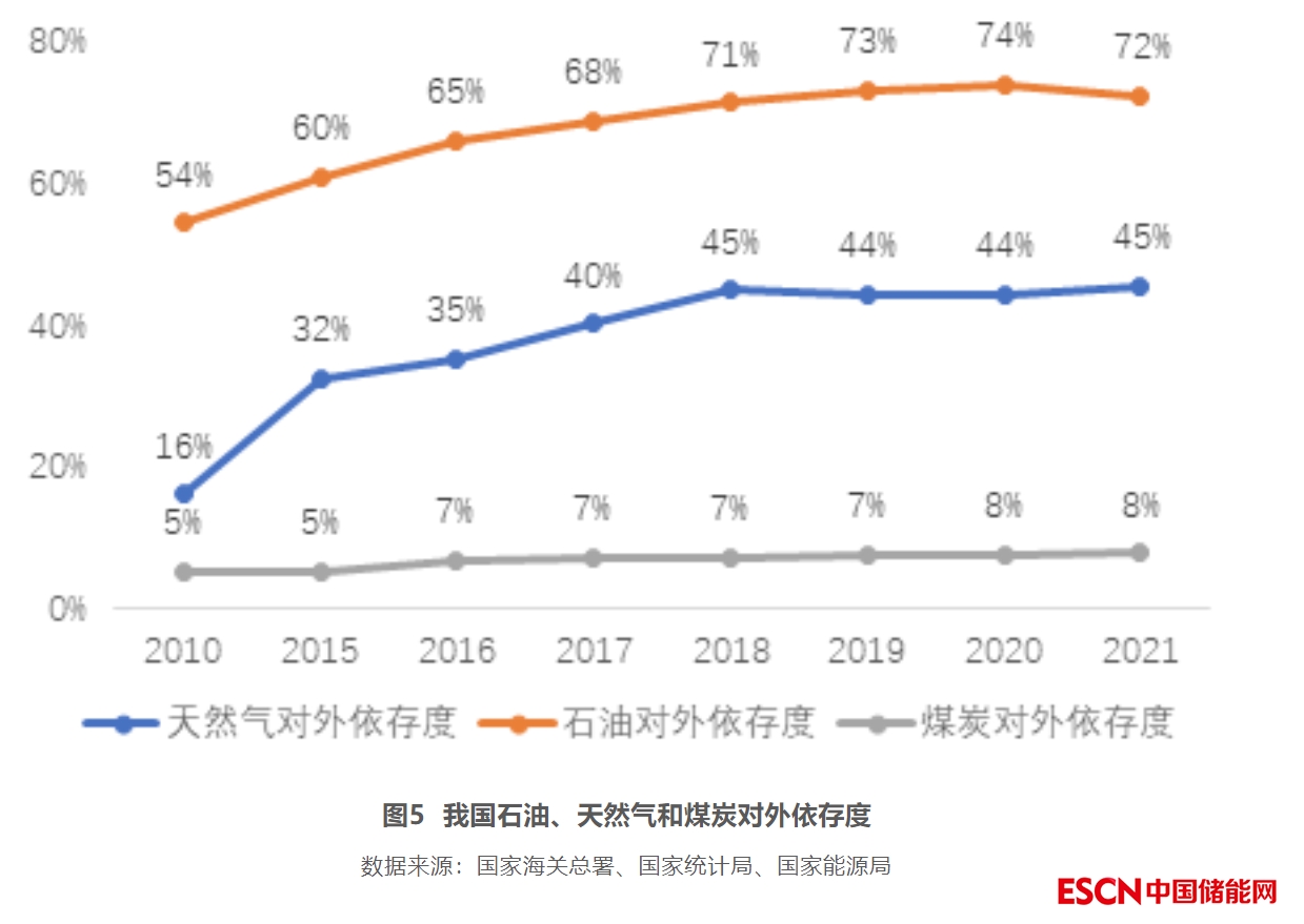 需要注意的是,繼2017年成為全球最大原油進(jìn)口國(guó)之后,中國(guó)2018年超越日本成為全球最大的天然氣進(jìn)口國(guó)。之后,我國(guó)油氣進(jìn)口規(guī)模不斷增長(zhǎng),對(duì)外依存度持續(xù)增加,能源供應(yīng)安全風(fēng)險(xiǎn)日益突出。在油氣領(lǐng)域,加強(qiáng)能耗“雙控”,加強(qiáng)電能替代和原材料替代具有重要的能源安全意義。