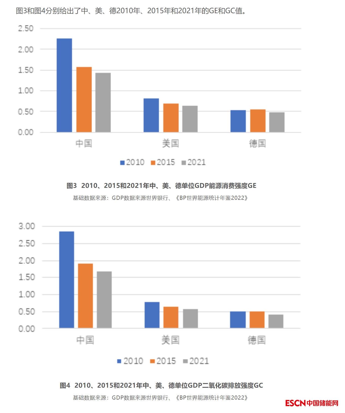 但是與美國(guó)、德國(guó)相比,2010年、2021年,我國(guó)GE值分別是美國(guó)的2.8倍和2.2倍,德國(guó)的4.2倍和3倍;我國(guó)的GC值分別是美國(guó)的3.7倍和3.0倍,德國(guó)的5.8倍和4倍。盡管差距縮小了,但是仍然偏高。我國(guó)應(yīng)進(jìn)一步推動(dòng)經(jīng)濟(jì)清潔低碳循環(huán)轉(zhuǎn)型和能源清潔低碳轉(zhuǎn)型。