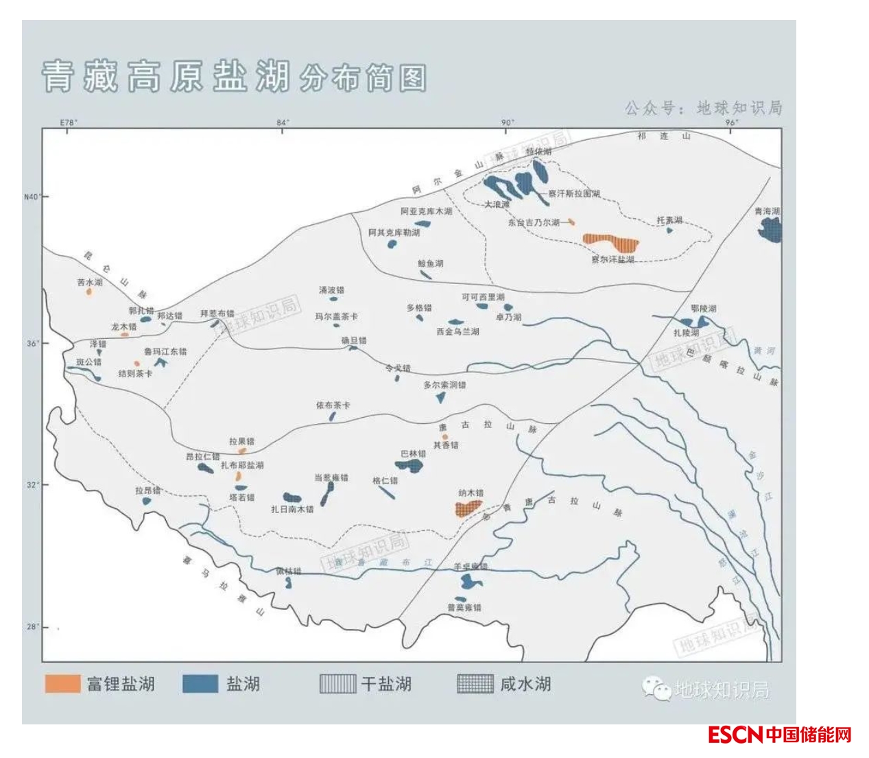 由于青藏高原隆升阻擋了印度洋的暖濕氣流,使得高原內(nèi)部變得干旱寒冷,在中部西部和北部形成了一大堆鹽湖,其中富鋰鹽湖就有80多個(gè),它們的氯化鋰(LiCl)含量大于每升0.3克,鋰離子濃度大于每升0.05克,都超過(guò)了鋰礦的工業(yè)品位。