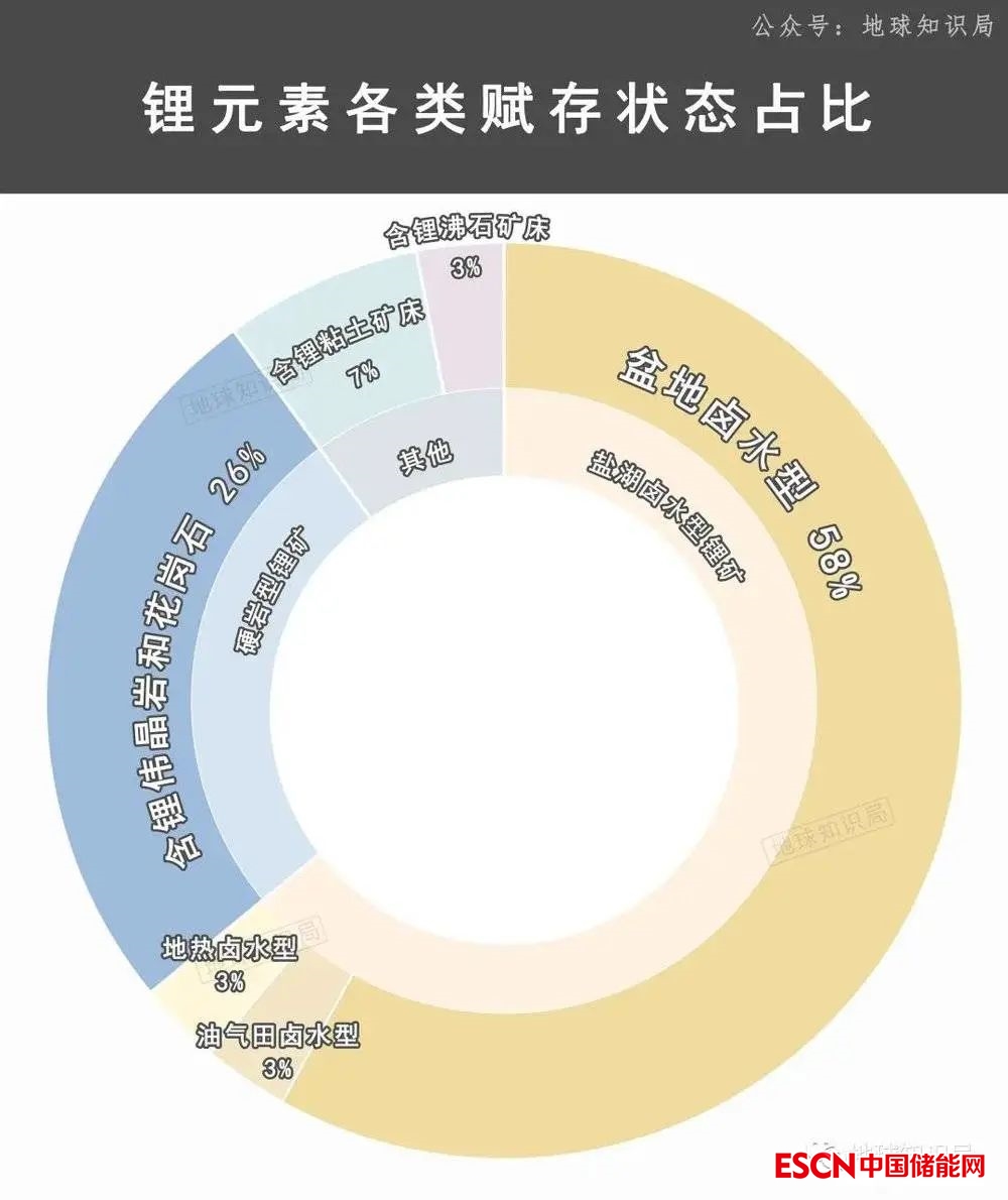 人類(lèi)能利用的鋰元素主要藏在鹽湖、巖石和沉積盆地的粘土中,這就決定了3種主要鋰礦類(lèi)型:鹽湖鹵水型鋰礦、偉晶巖型鋰礦和沉積型鋰礦,我們簡(jiǎn)稱(chēng)為鹽湖鋰礦、硬巖鋰礦和沉積鋰礦。