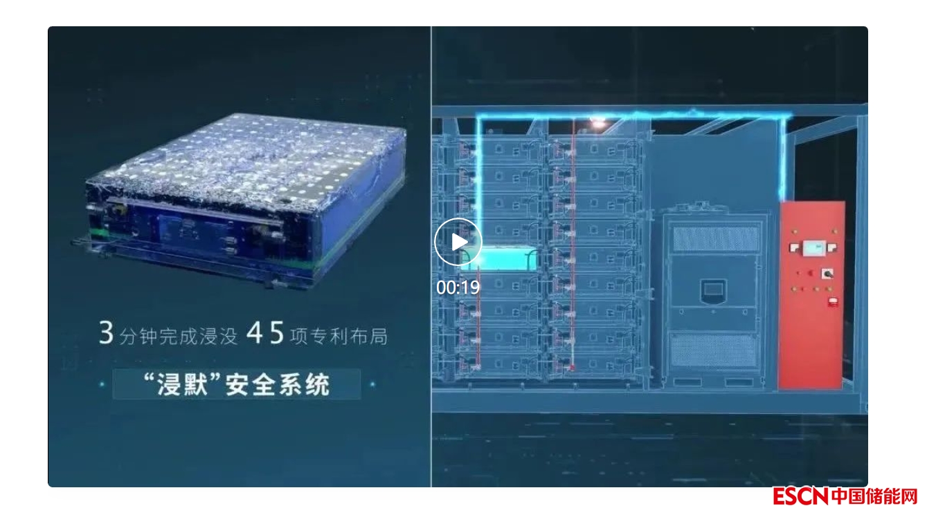 “浸默”電池安全系統(tǒng)包含“浸默”液冷PACK箱、液冷系統(tǒng)、消防系統(tǒng)、匯流柜等,一旦防爆閥開啟,可在3秒內(nèi)消防報(bào)警,10秒內(nèi)啟動(dòng)抑制動(dòng)作,3分鐘完成液態(tài)抑制劑電池包浸沒,并將電芯溫度從最高81℃降至30℃;電池模塊無熱蔓延,電芯無復(fù)燃,系統(tǒng)無其他風(fēng)險(xiǎn),最低成本解決儲能電池?zé)崾Э貑栴},“浸默”電池安全系統(tǒng)將儲能安全提升到新高度。