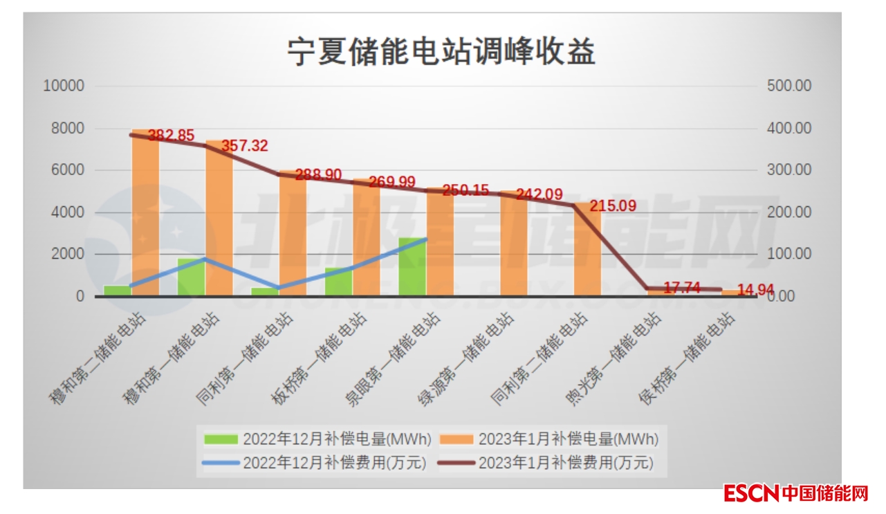 據(jù)北極星儲能網(wǎng)統(tǒng)計,自2022年12月開始,寧夏投運的儲能電站陸續(xù)開始參與西北地區(qū)電力輔助服務(wù)調(diào)峰市場,2022年12月-2023年1月兩個月內(nèi)9座儲能電站累計調(diào)峰收益超過2370萬元。