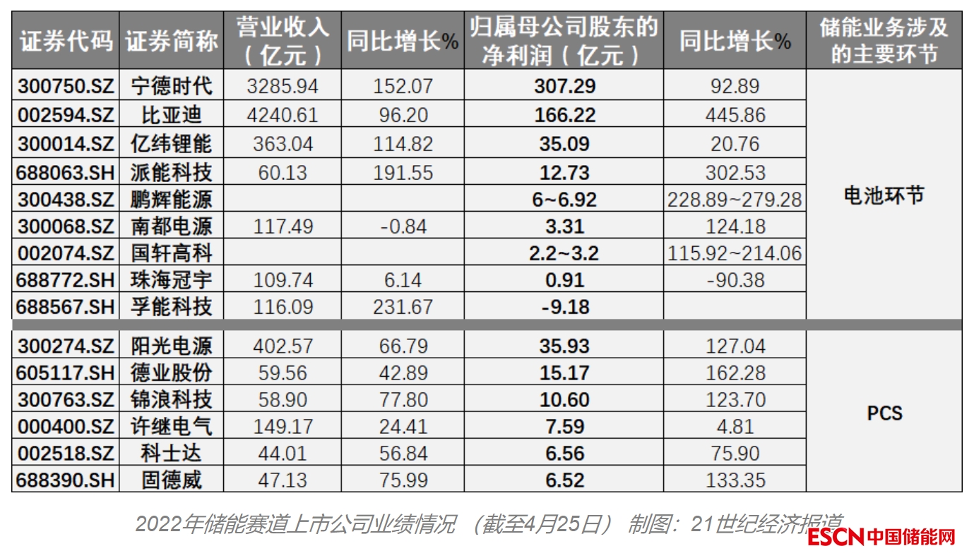 在國內大型儲能和海外市場需求的共振之下,儲能的業(yè)績紅利正在逐步兌現(xiàn)。近期,多家儲能行業(yè)公司集中發(fā)布2022年年報及2023年一季報。整體來看,多數儲能賽道上市公司業(yè)績高增,部分公司歸屬于母公司股東的凈利潤同比增長甚至超過100%。