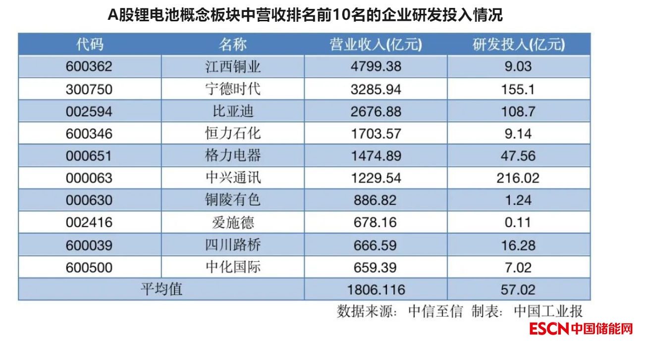在上述366家中,營(yíng)收規(guī)模排名前10的企業(yè),其主業(yè)領(lǐng)域既包含動(dòng)力電池制造,還包含稀有金屬開采冶煉、石化、科創(chuàng)、基建、電器等多元化主業(yè),平均營(yíng)收規(guī)模1806.116億元,平均科研投入57.02億元。