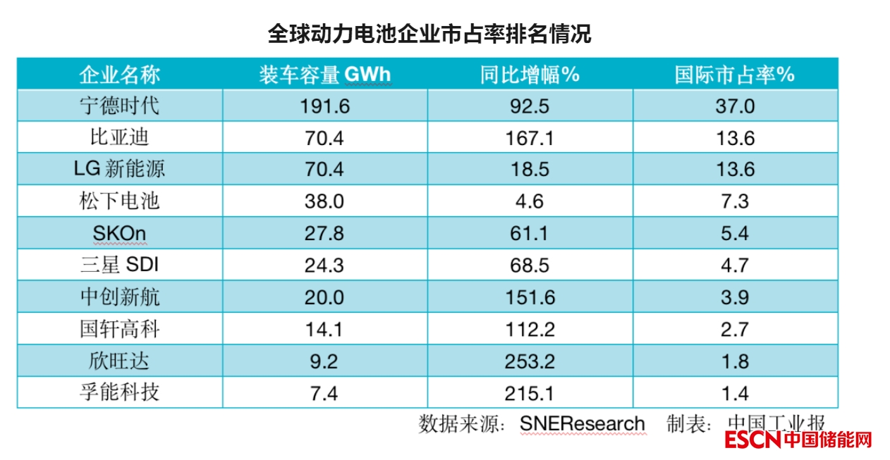 根據(jù)韓國(guó)市場(chǎng)調(diào)研機(jī)構(gòu)SNEResearch最新發(fā)布的數(shù)據(jù),寧德時(shí)代、比亞迪、中創(chuàng)新航、國(guó)軒高科、欣旺達(dá)、孚能科技,6家中國(guó)企業(yè)的裝機(jī)總量為3127GWh,全球市占率為60.4%。