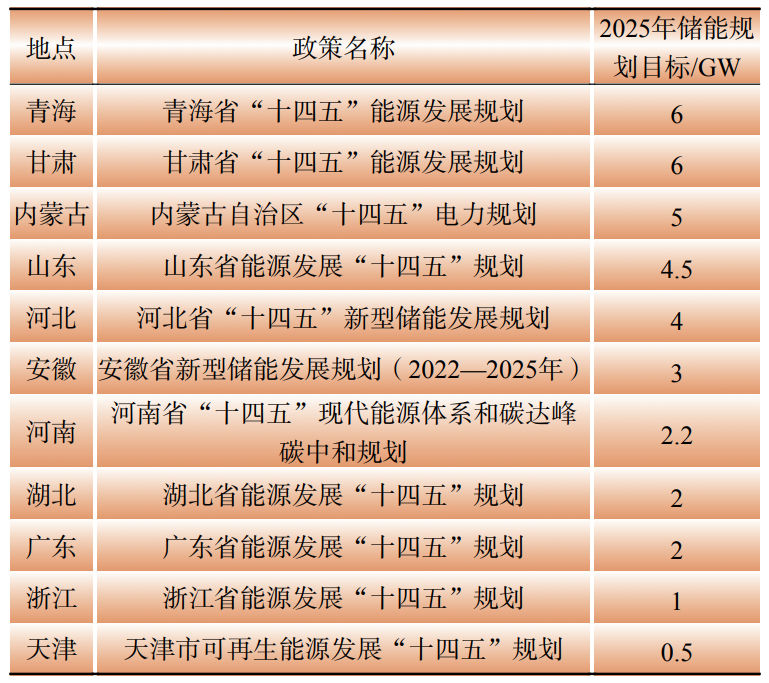 Table 3 Energy storage plans of provinces and cities in China