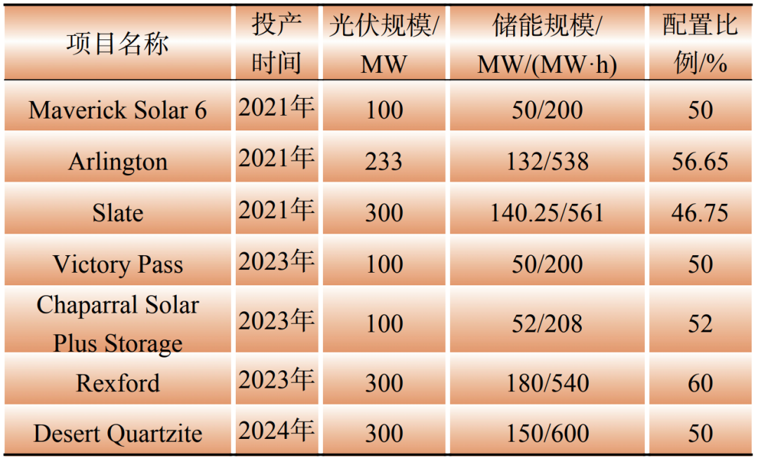 Table 2 Typical “solar + storage” projects in California