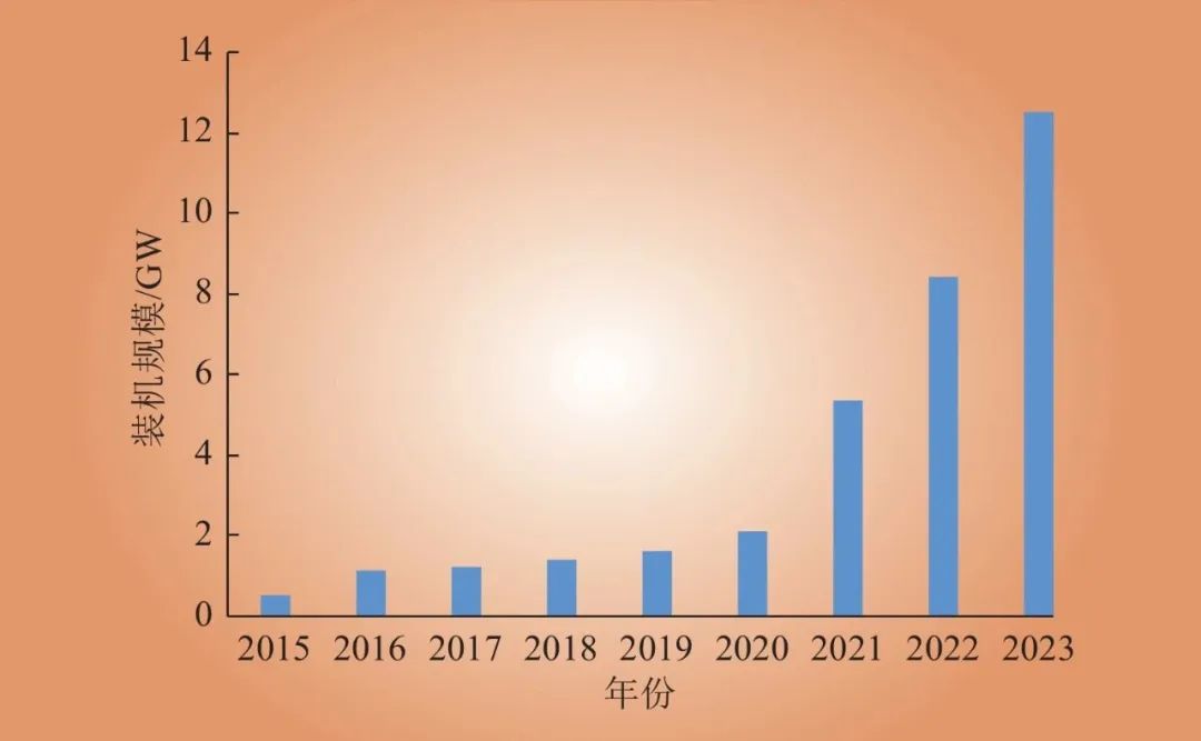 圖1 美國(guó)2015—2023年大型儲(chǔ)能累計(jì)規(guī)模