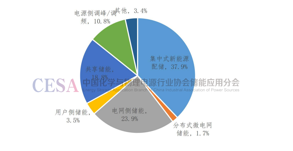 圖9 2022年中國(guó)新型儲(chǔ)能新增裝機(jī)應(yīng)用分布情況