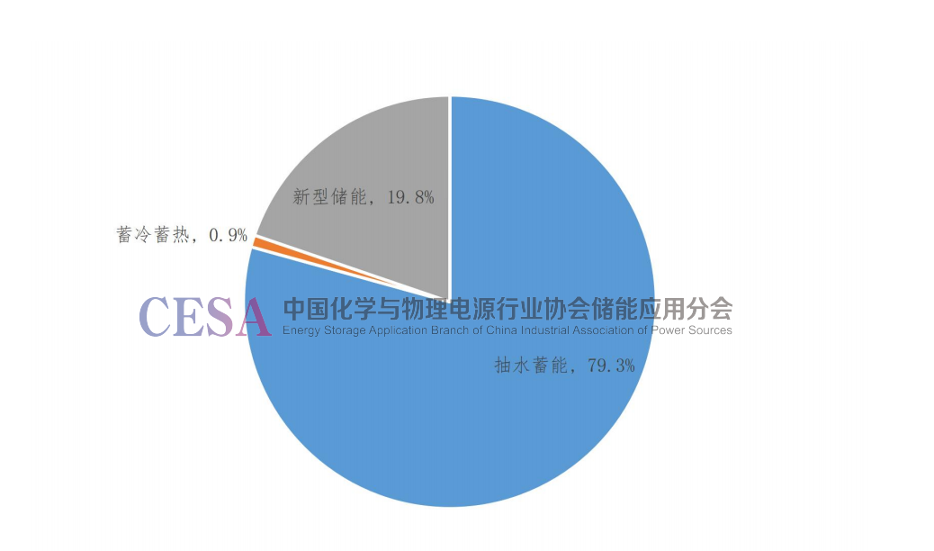 2022年中國(guó)儲(chǔ)能累計(jì)裝機(jī)功率為56.9GW,其中:新型儲(chǔ)能累計(jì)裝機(jī)功率約為11.2GW,占儲(chǔ)能裝機(jī)總量的19.8%;抽水蓄能累計(jì)裝機(jī)功率約為45.1GW,占儲(chǔ)能裝機(jī)總量的79.3%;蓄冷蓄熱累計(jì)裝機(jī)功率約為0.5GW,占儲(chǔ)能裝機(jī)總量的0.9%。
