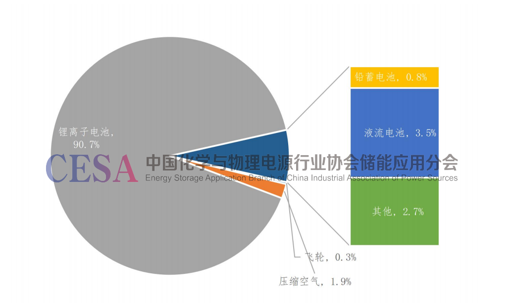 5.2022年中國(guó)新型儲(chǔ)能新增裝機(jī)中鋰離子電池占比為90.7%