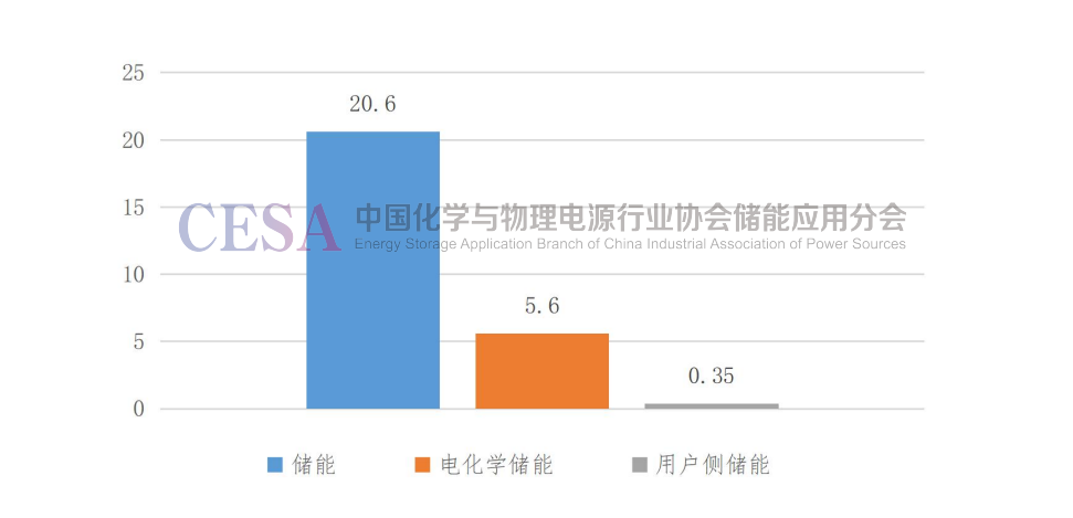 2022年中國(guó)儲(chǔ)能市場(chǎng)新增裝機(jī)功率為20.6GW,其中電化學(xué)儲(chǔ)能新增裝機(jī)功率約為5.6GW。用戶側(cè)儲(chǔ)能新增裝機(jī)功率約為0.35GW。