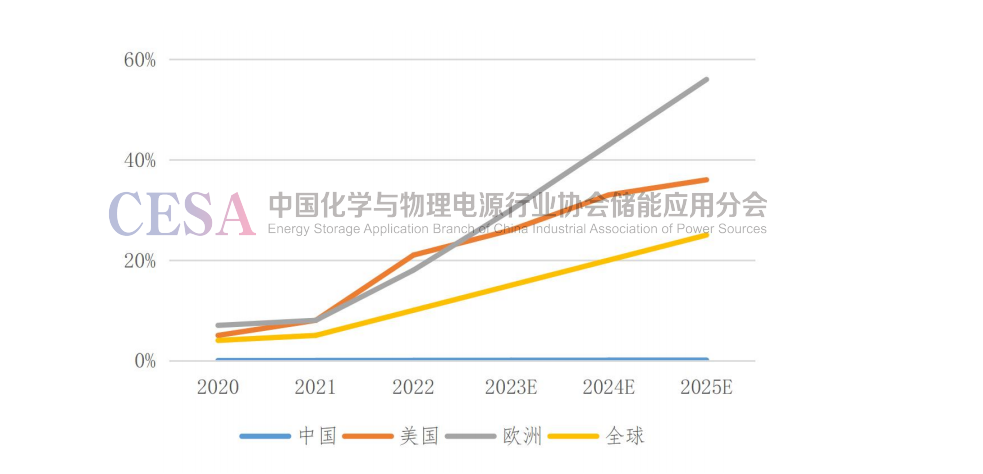 圖6 全球各區(qū)域戶用儲(chǔ)能滲透率預(yù)測(cè)