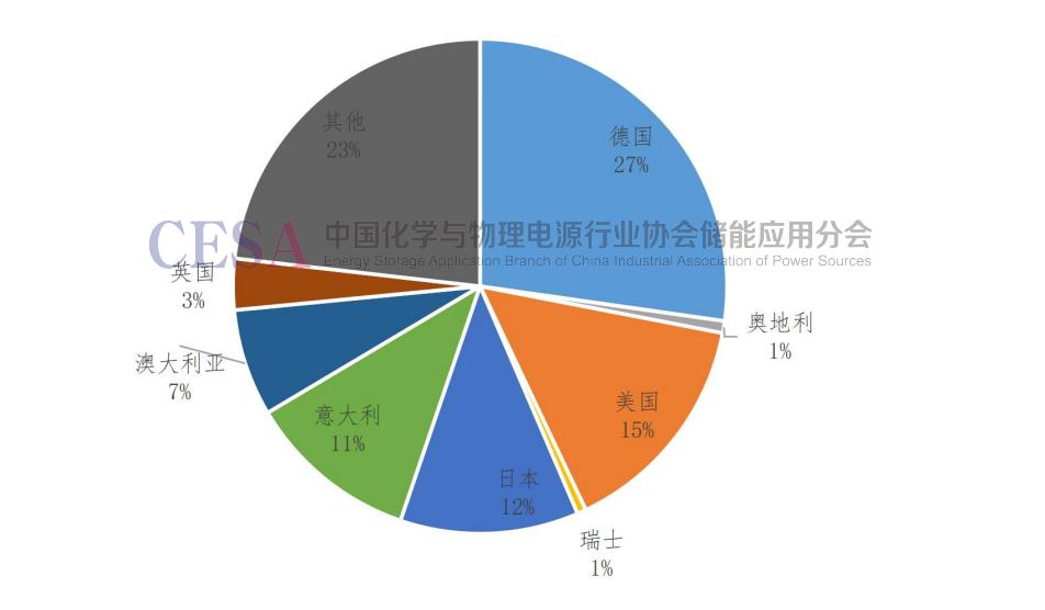 3.2022年戶用儲(chǔ)能新增裝機(jī)中德國(guó)、美國(guó)、日本、意大利和澳大利亞位列前5,合計(jì)占比超過(guò)70%