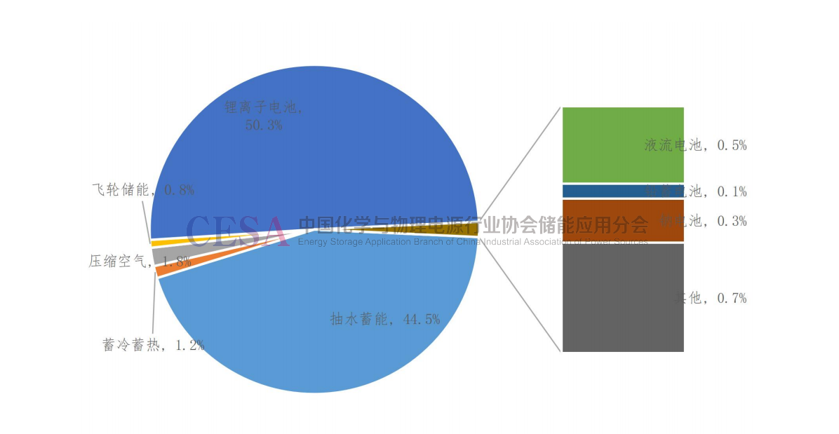 6.2022年中國(guó)新增電化學(xué)儲(chǔ)能中鋰離子電池占比超96%,占絕對(duì)主導(dǎo)地位