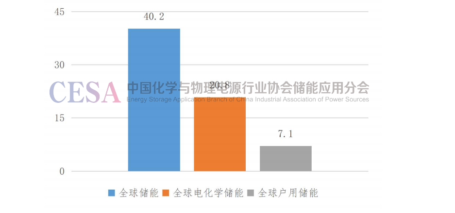 圖1 2022年全球儲(chǔ)能、電化學(xué)儲(chǔ)能和戶用儲(chǔ)能累計(jì)裝機(jī)功率