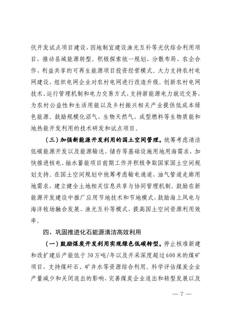 鼓勵(lì)農(nóng)村可再生能源開(kāi)發(fā)利用。優(yōu)先支持農(nóng)村地區(qū)屋頂分布式光伏發(fā)電以及沼氣發(fā)電等生物質(zhì)能發(fā)電接入電網(wǎng)。鼓勵(lì)在農(nóng)村適宜地區(qū)開(kāi)發(fā)光伏發(fā)電,分批重點(diǎn)推進(jìn)整縣屋頂分布式光伏開(kāi)發(fā)試點(diǎn)項(xiàng)目建設(shè),因地制宜建設(shè)漁光互補(bǔ)等光伏綜合利用項(xiàng)目,推動(dòng)縣域能源轉(zhuǎn)型。積極探索統(tǒng)一規(guī)劃、分散布局、農(nóng)企合作、利益共享的可再生能源項(xiàng)目投資經(jīng)營(yíng)模式。大力支持農(nóng)村電網(wǎng)建設(shè),組織電網(wǎng)企業(yè)對(duì)農(nóng)村電網(wǎng)進(jìn)行改造升級(jí)。