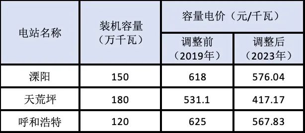 表:部分容量電價下調(diào)的抽水蓄能電站