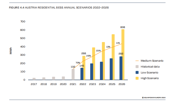 得益于上述有利條件,2021年,奧地利戶儲市場增長了2倍,達(dá)到132MWh,是歐洲第三大戶儲市場。