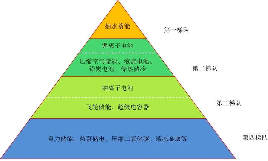 綜合分析各儲(chǔ)能技術(shù)2022年的基礎(chǔ)研究、關(guān)鍵技術(shù)和集成示范的情況,各種儲(chǔ)能技術(shù)仍可以大致分為四個(gè)梯隊(duì),和2021年基本一致。其中,第一梯隊(duì)為抽水蓄能,單機(jī)規(guī)模100 MW以上,占2022年全國(guó)儲(chǔ)能裝機(jī)的77.1%左右;第二梯隊(duì)為鋰離子電池、壓縮空氣儲(chǔ)能、液流電池、鉛蓄電池和儲(chǔ)熱儲(chǔ)冷技術(shù),單機(jī)規(guī)??蛇_(dá)10~100 MW,其中鋰離子電池裝機(jī)最多,有可能未來(lái)形成單獨(dú)的一個(gè)梯隊(duì);第三梯隊(duì)為鈉離子電池、飛輪儲(chǔ)能和超級(jí)電容器,目前單機(jī)規(guī)??梢赃_(dá)到MW級(jí),其中鈉離子發(fā)展受關(guān)注最多,有可能未來(lái)進(jìn)入第二梯隊(duì);第四梯隊(duì)為重力儲(chǔ)能、熱泵儲(chǔ)電、壓縮二氧化碳和液態(tài)金屬技術(shù)等新型儲(chǔ)能技術(shù),需要進(jìn)一步的研發(fā),以便實(shí)現(xiàn)集成示范和產(chǎn)業(yè)化應(yīng)用。
