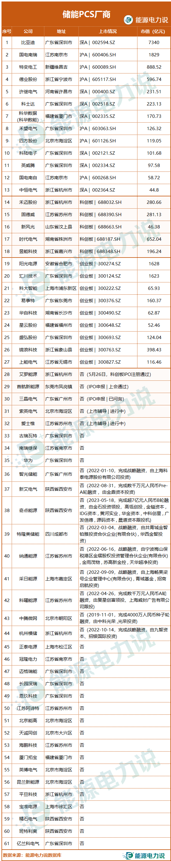 能源電力說根據(jù)公開數(shù)據(jù),整理了61家有儲能PCS產(chǎn)品的廠商。