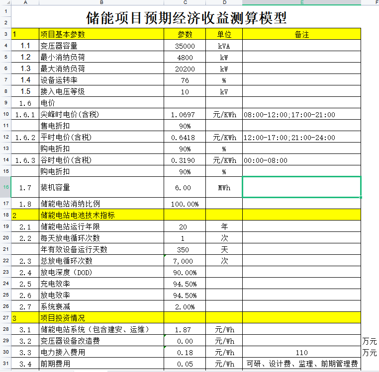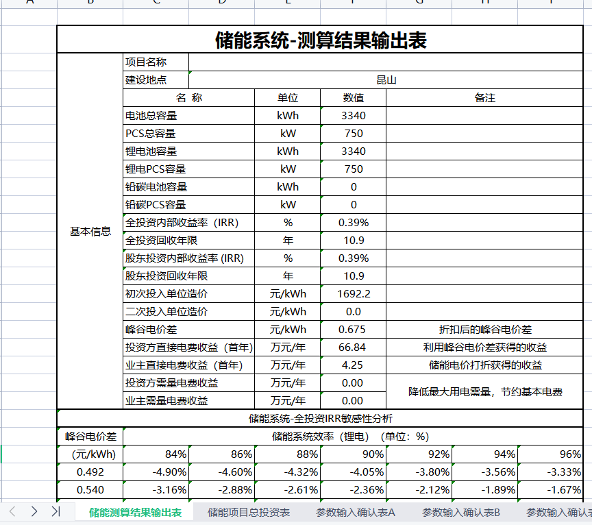 儲能收益計算模型1(自動化表格)