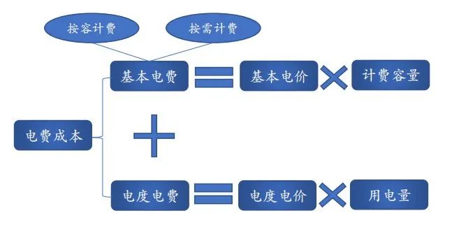 我國針對受電變壓器容量在315千伏安及以上的大工業(yè)用電采用兩部制電價,基本電費(fèi)是指按用戶受電變壓器(按容計費(fèi))或最大需量計算(按需計費(fèi))的電價收費(fèi),電度電費(fèi)是指按用戶實(shí)用電量計算的電價。