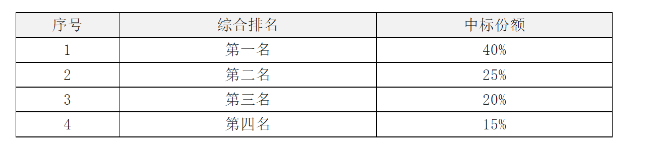 據(jù)招標公告,本項目中標人數(shù)量為4個,每個中標人對應的份額如下: