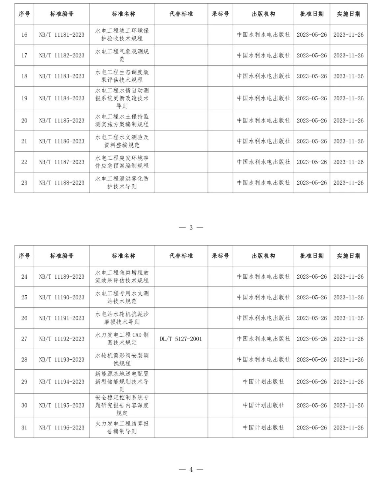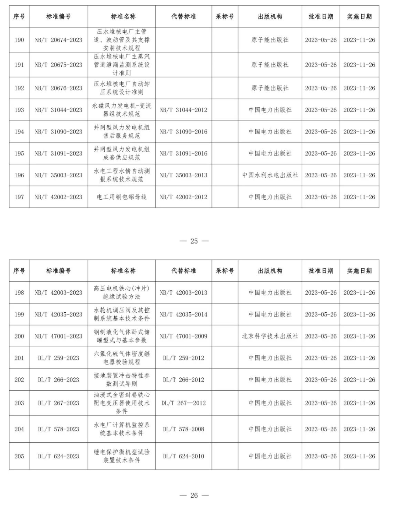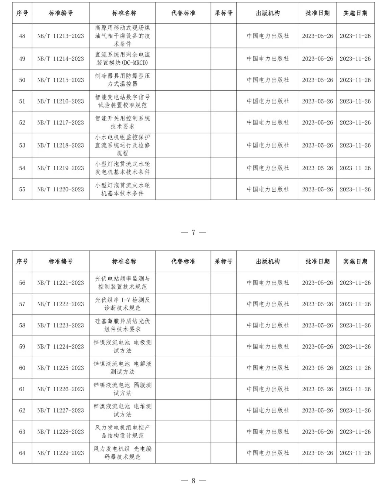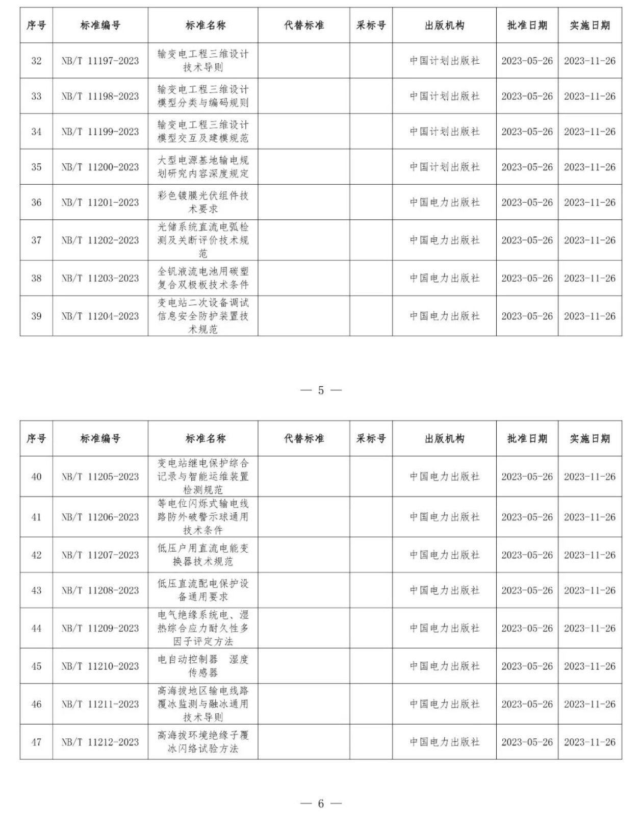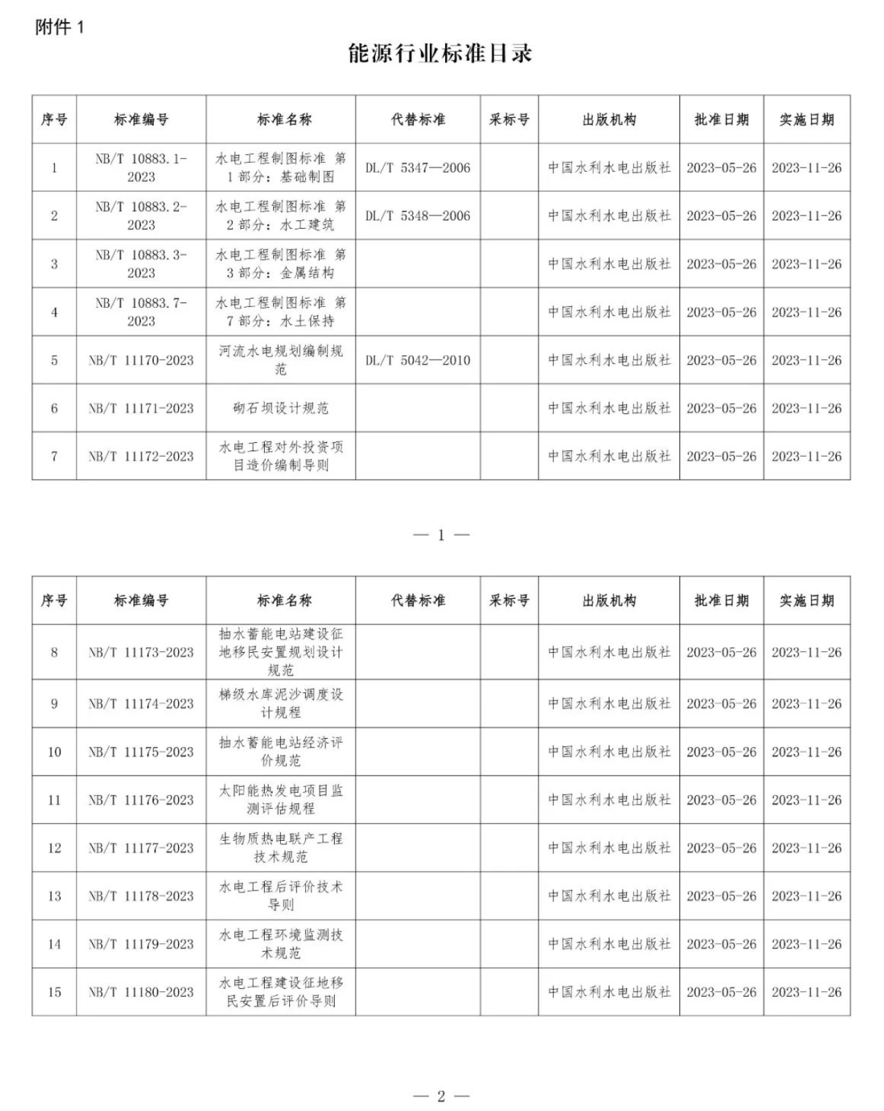 根據(jù)《中華人民共和國標(biāo)準(zhǔn)化法》《能源標(biāo)準(zhǔn)化管理辦法》,國家能源局批準(zhǔn)《新能源基地送電配置新型儲能規(guī)劃技術(shù)導(dǎo)則》等310項能源行業(yè)標(biāo)準(zhǔn)(附件1)、《Code for Seismic Design of Hydropower Projects》等19項能源行業(yè)標(biāo)準(zhǔn)外文版(附件2),現(xiàn)予以發(fā)布。