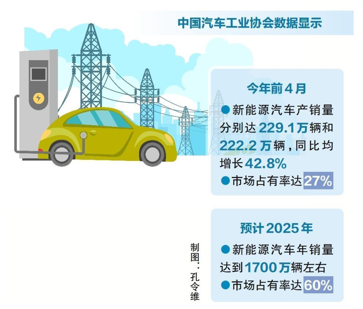 新能源汽車是全球汽車產(chǎn)業(yè)轉(zhuǎn)型升級(jí)、綠色發(fā)展的主要方向,也是我國(guó)汽車產(chǎn)業(yè)高質(zhì)量發(fā)展的戰(zhàn)略選擇,發(fā)展空間廣闊。行業(yè)預(yù)計(jì),今年我國(guó)新能源汽車銷量將達(dá)到900萬輛左右,繼續(xù)實(shí)現(xiàn)快速增長(zhǎng);2025年新能源汽車市場(chǎng)占有率將接近甚至達(dá)到60%,年銷量達(dá)到1700萬輛左右。