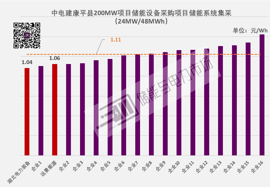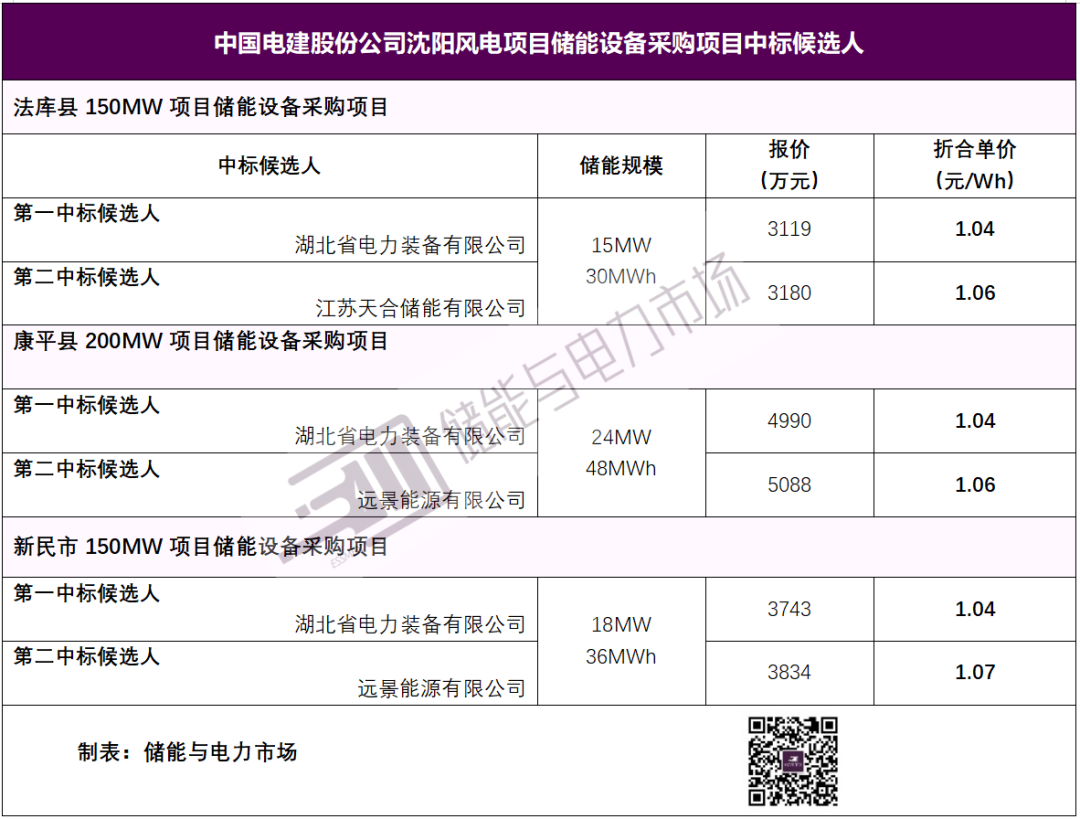 湖北省電力裝備有限公司以1.04元/Wh單價(jià)成為3個(gè)包件的第一中標(biāo)候選人。公開信息顯示,湖北省電力裝備有限公司是中國電力建設(shè)集團(tuán)有限公司100%控股的孫公司。