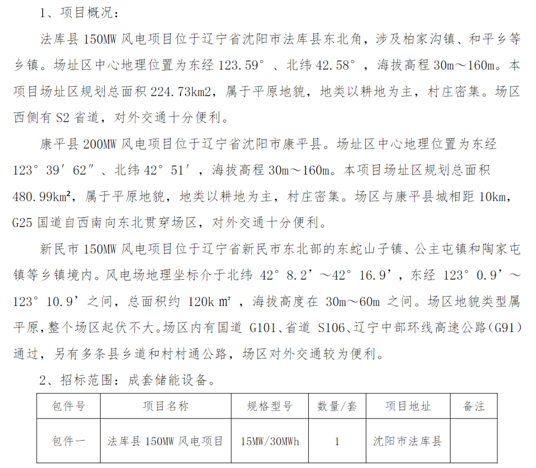 法庫縣150MW風(fēng)電項(xiàng)目配建儲(chǔ)能15MW/30MWh