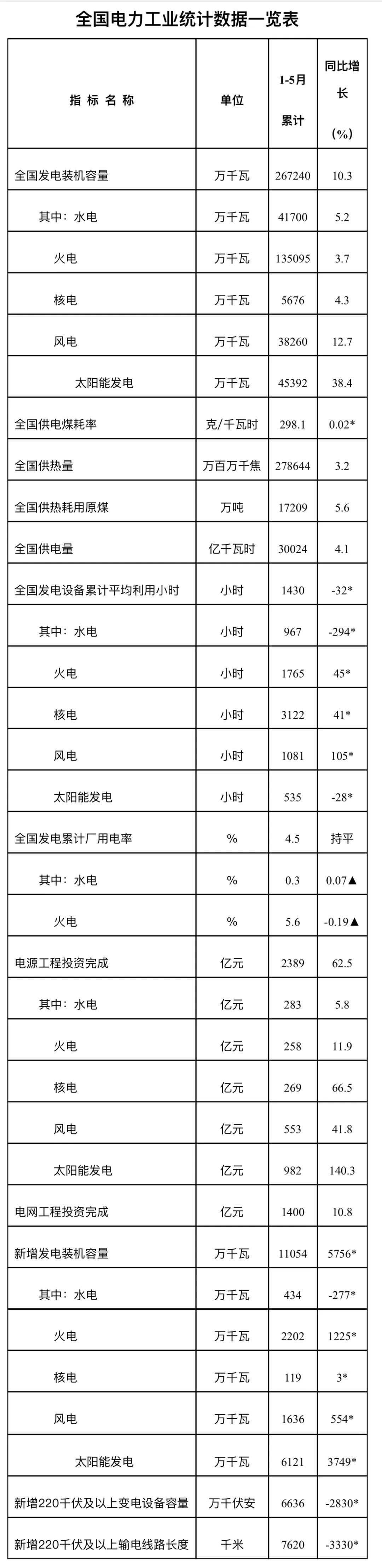 注:1.全社會(huì)用電量為全口徑數(shù)據(jù),全國供電量為調(diào)度口徑數(shù)據(jù)。2.“同比增長”列中,標(biāo)*的指標(biāo)為絕對量;標(biāo)▲的指標(biāo)為百分點(diǎn)。