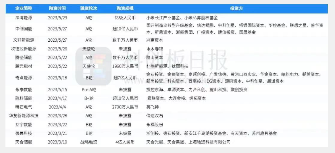 儲能領(lǐng)域一級市場融資火熱