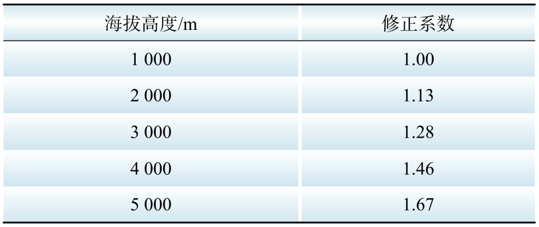 逆變器作為將光伏組件所發(fā)直流電轉(zhuǎn)化為電網(wǎng)所需交流電的核心設(shè)備,影響著整個光伏電站輸出功率與輸出電能質(zhì)量。大氣壓力、空氣密度和濕度隨海拔升高而逐漸降低,進(jìn)而會導(dǎo)致電氣設(shè)備絕緣強(qiáng)度和散熱性能下降。海拔在5 000 m范圍內(nèi),每上升1 000 m,平均氣壓下降7.7~10.5 kPa,電氣設(shè)備外絕緣強(qiáng)度下降8%~13%,溫升增加3%~10%,環(huán)境溫度降低6 ℃;以海拔1000 m為基準(zhǔn),為保證電氣設(shè)備在高海拔地區(qū)安全使用,須對其電氣間隙按照表5所示系數(shù)進(jìn)行修正[19]。
