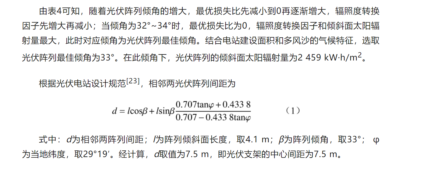 Table 4 Annual solar radiation on inclined surface of photovoltaic array with different inclination angles