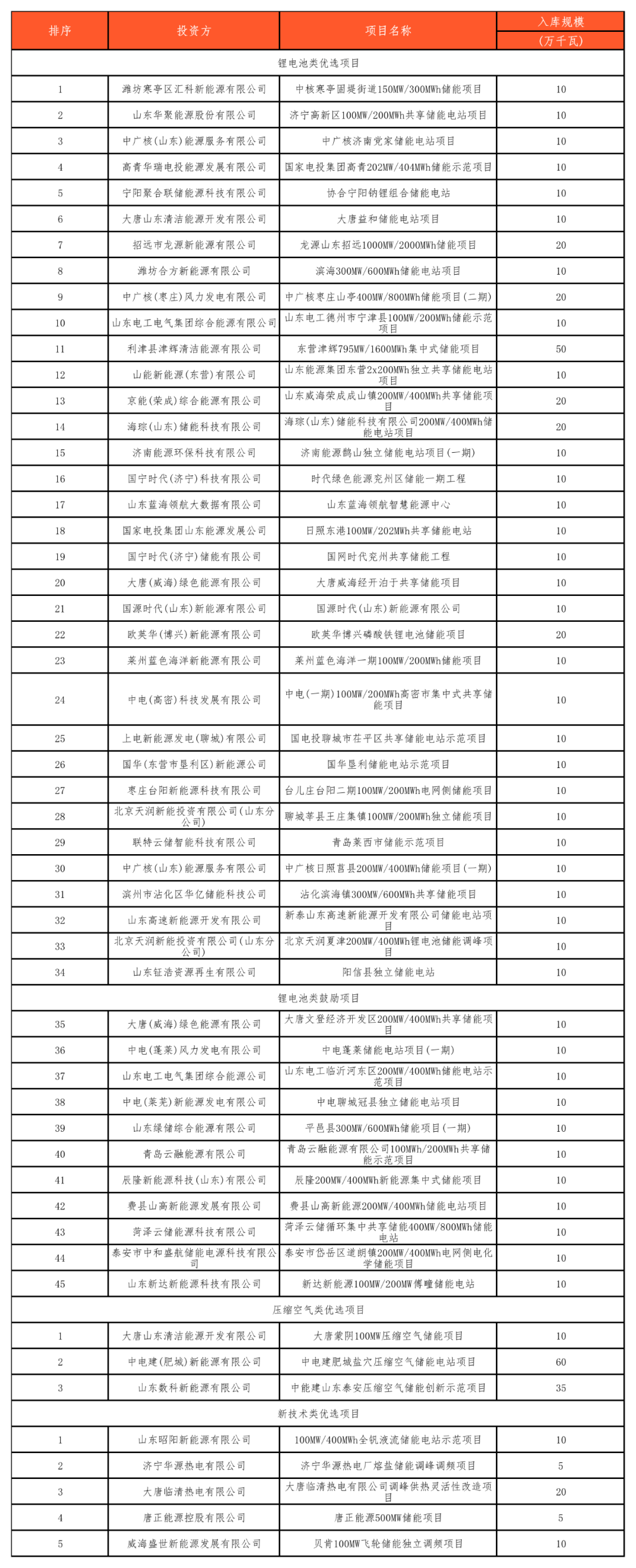 附:山東省2023年度新型儲(chǔ)能入庫(kù)項(xiàng)目(第一批)公示名單