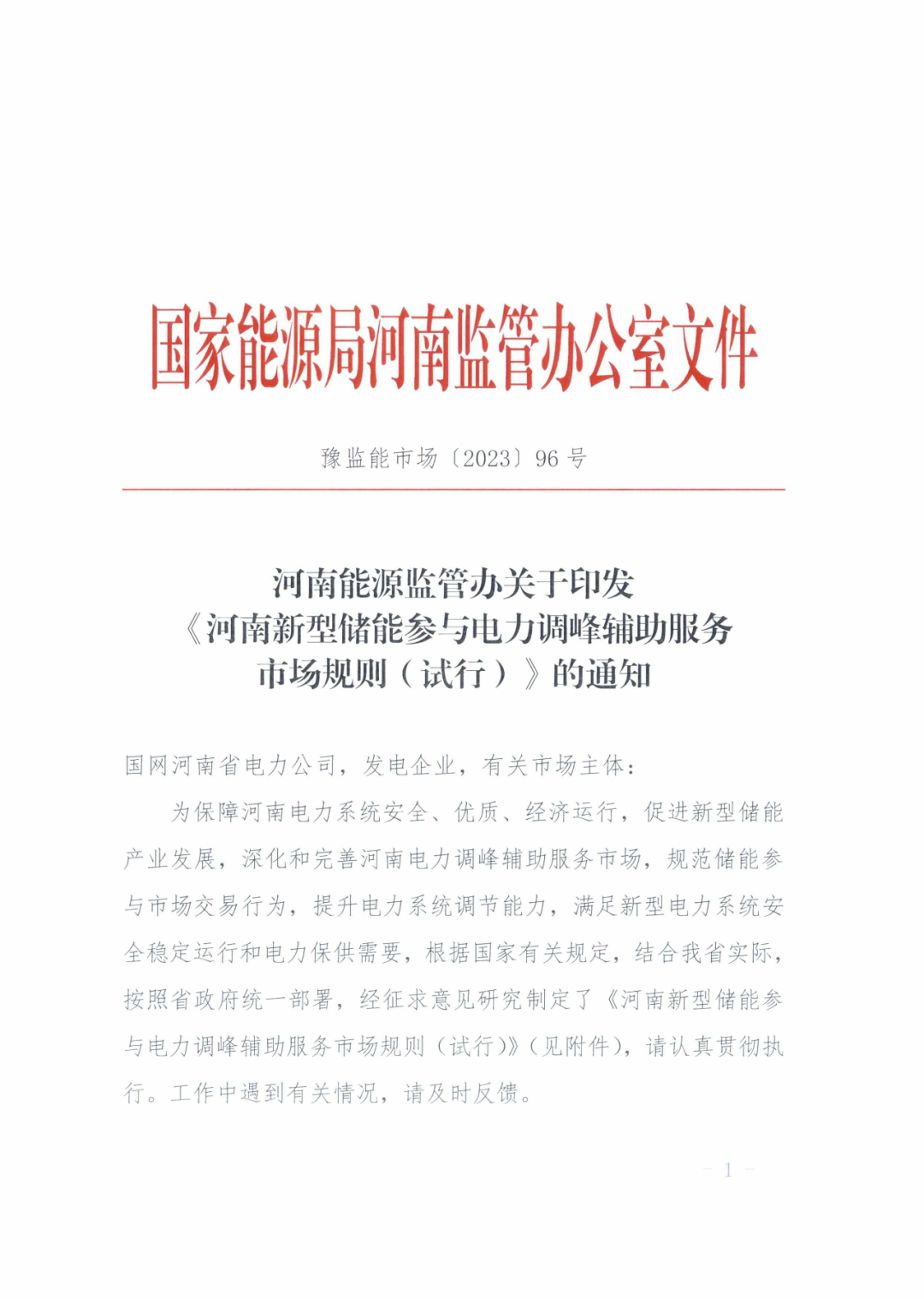 中國(guó)儲(chǔ)能網(wǎng)訊:7月18日,國(guó)家能源局河南監(jiān)管辦正式發(fā)布《河南新型儲(chǔ)能參與電力調(diào)峰輔助服務(wù)市場(chǎng)規(guī)則(試行)》(下稱:規(guī)則)。重點(diǎn)內(nèi)容如下: