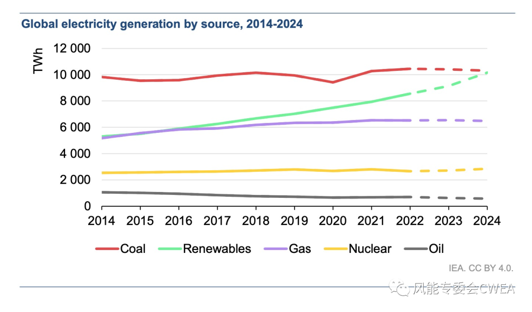 雖然全球許多地區(qū)的電力需求在不斷擴大,但受全球可再生能源部署的快速增長的影響,未來兩年全球電力需求的所有額外增長都可被可再生能源滿足。預計到2024年,可再生能源占全球發(fā)電量的比例將超過三分之一。根據(jù)天氣情況,2024 年全球可再生能源發(fā)電量很可能首次超過煤炭發(fā)電量。