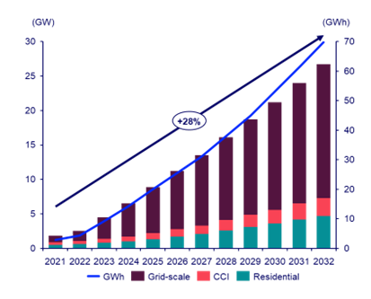 Wood Mackenzie公司高級研究分析師Kashish Shah說,“近年來可再生能源發(fā)電量的激增和競爭激烈的市場設(shè)計(jì),使澳大利亞成為全球最具吸引力的電網(wǎng)規(guī)模儲能市場之一。得益于競爭激烈的批發(fā)市場和頻率控制市場為電池儲能系統(tǒng)提供了多樣化的收入來源,以及澳大利亞政府提供的大量資金為儲能項(xiàng)目提供了收入確定性,我們預(yù)計(jì)從現(xiàn)在到2032年,澳大利亞部署的電池儲能系統(tǒng)的裝機(jī)容量將增加28%?!?