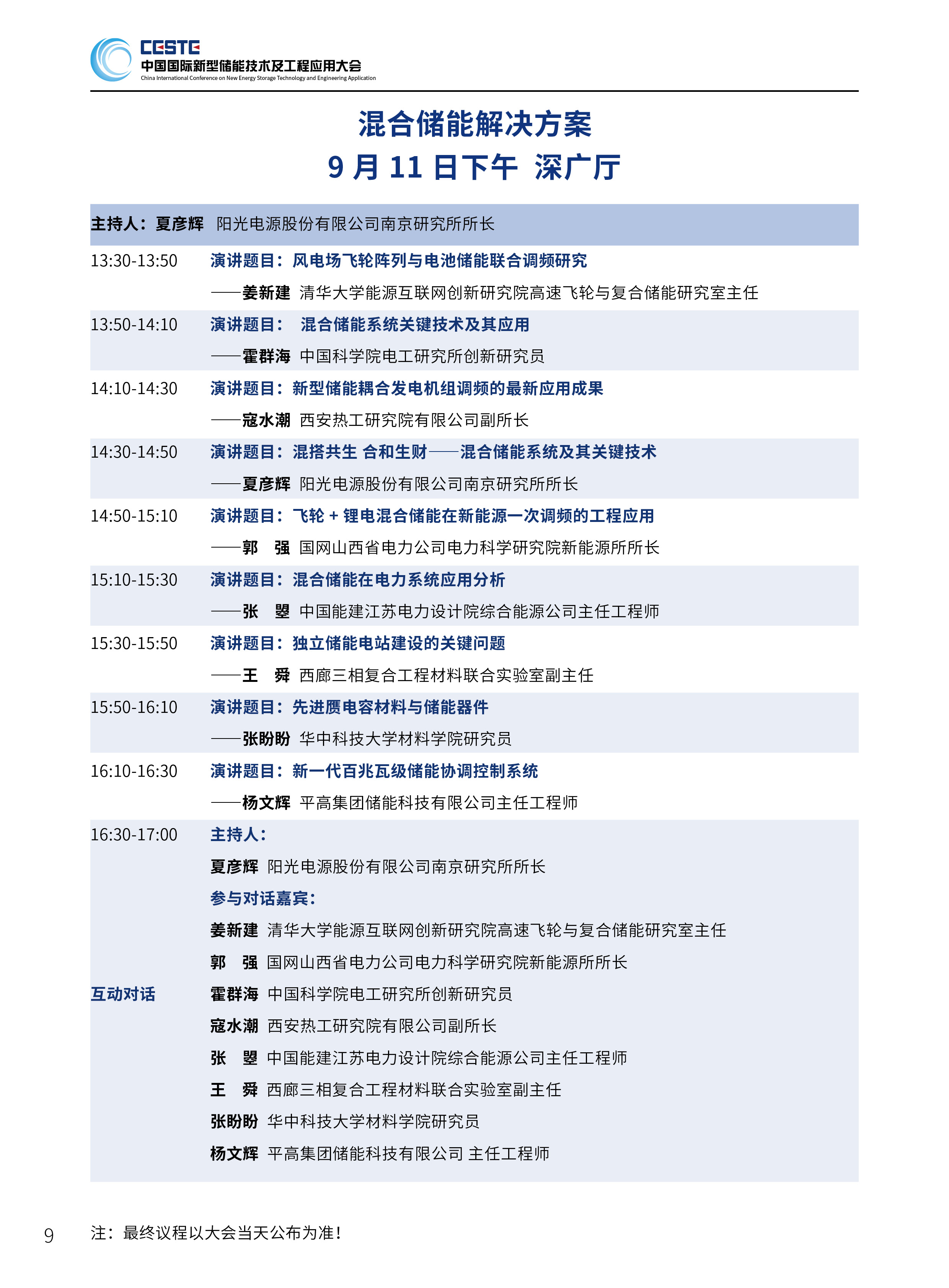 本屆大會(huì)將安排:大會(huì)開(kāi)幕式暨碳中和能源院士高峰論壇、長(zhǎng)時(shí)儲(chǔ)能技術(shù)及應(yīng)用、共享儲(chǔ)能、工商業(yè)儲(chǔ)能、混合儲(chǔ)能解決方案、安全與系統(tǒng)集成、新能源動(dòng)力系統(tǒng)控制技術(shù)、儲(chǔ)能金融與投資、全生命周期碳足跡分析與應(yīng)用技術(shù)、儲(chǔ)能材料、回收與裝備等10個(gè)專場(chǎng)論壇,以下為混合儲(chǔ)能解決方案專場(chǎng)議程。