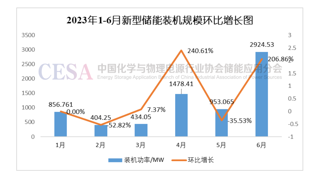 圖3 2023年1-6新型儲能裝機規(guī)模同比增長圖