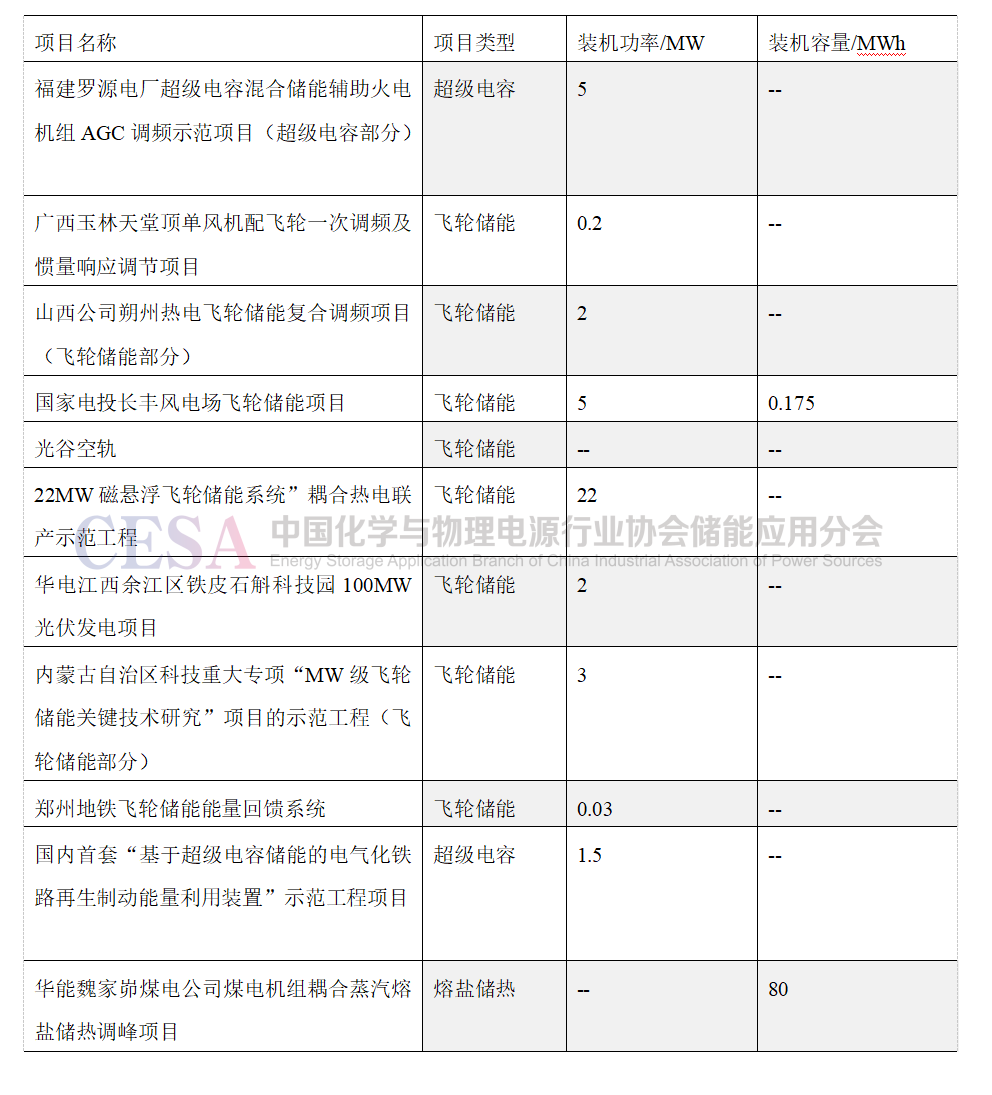 表1 2023年1-6月非電化學新型儲能項目統(tǒng)計