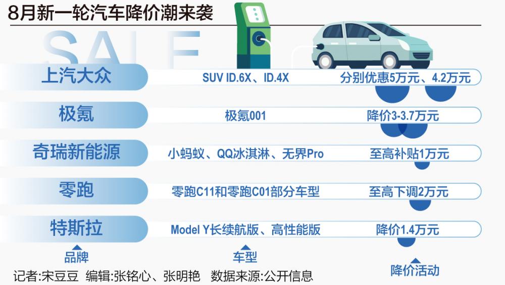 8月1日,上汽大眾率先拉開降價序幕,針對旗下10款車型進行降價,最高降幅6萬元,包括燃油車和新能源車,其中上市僅1個多月的朗逸新銳也限時降價,至高優(yōu)惠2萬元。同時,上汽大眾將此前“限時7月、限量7000臺”的ID.3促銷活動延續(xù)至8月31日,起售價依舊為12.59萬元。