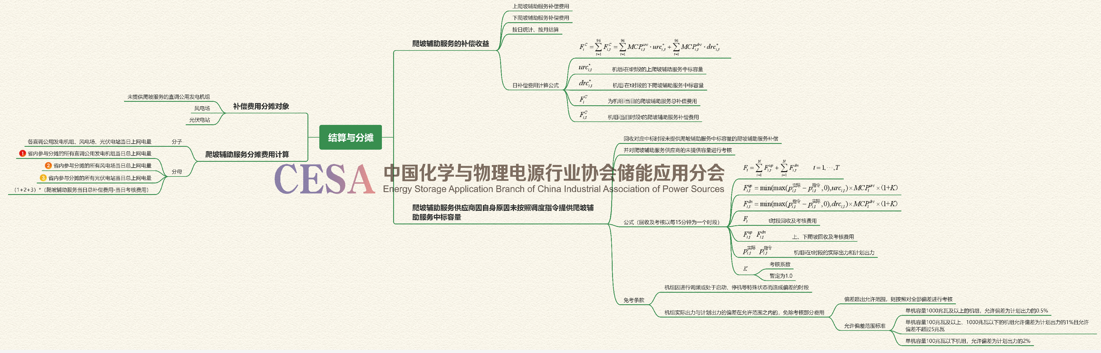 結算分攤部分,是大家最關心的部分。分為爬坡輔助服務收益計算、考核方法、分攤對象分類、分攤費用計算四個部分。對市場運行的特殊情況,也設置了免除考核的條款,保證了運行的可執(zhí)行性。