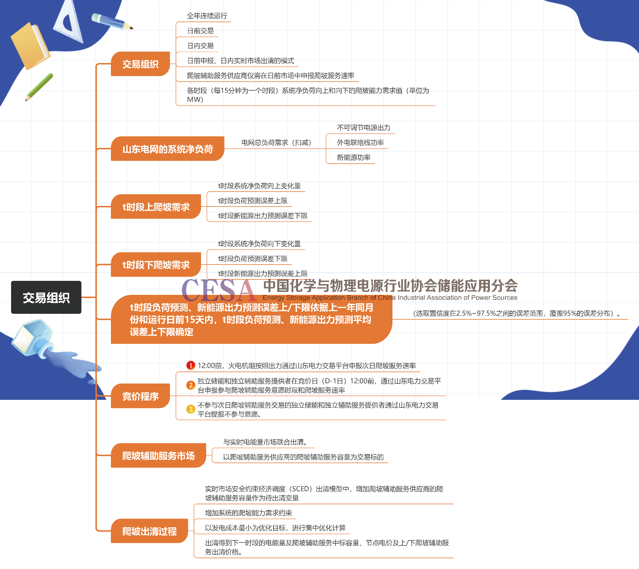 交易組織部分,分為交易組織、爬坡服務計算過程、競價程序、出清過程幾個部分。詳細看一下過程,就能明白這個服務的組織的細致程度和難點。