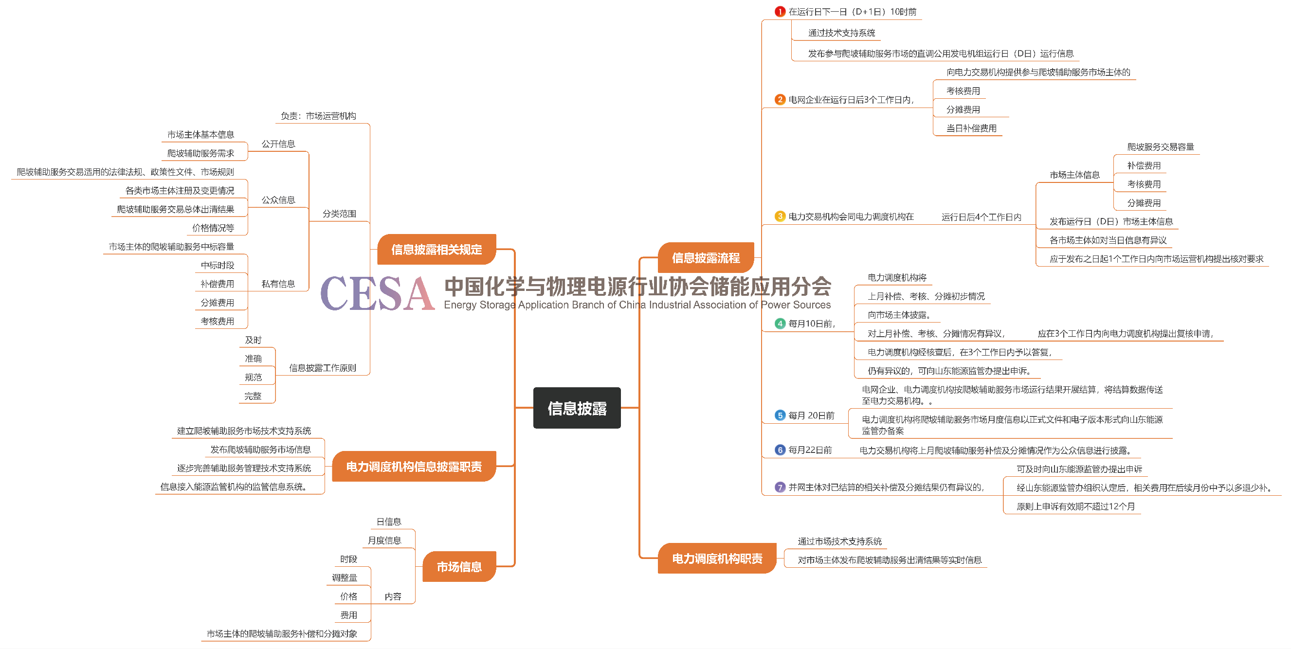 信息披露部分,規(guī)定了市場干預啟動的調(diào)節(jié)和措施,規(guī)定了信息披露的流程、相關機構職責、市場信息的分類。為了便于理解,在披露流程前,增加了序號。信息披露制度的嚴格執(zhí)行,為輔助服務運行的規(guī)范性,提供了制度保障。