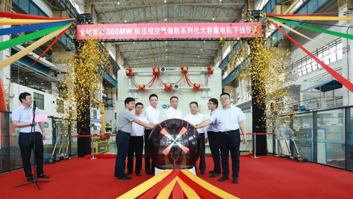 中國儲能網(wǎng)訊:8月23日,由上海電氣集團上海電機廠有限公司(以下簡稱“上海電機廠”)自主研制的全球首套300MW級壓縮空氣儲能系列化大容量電機舉行下線儀式。產(chǎn)品主要技術(shù)指標達到同類產(chǎn)品國際先進水平,對推動國家壓縮空氣儲能行業(yè)進展具有重大意義。