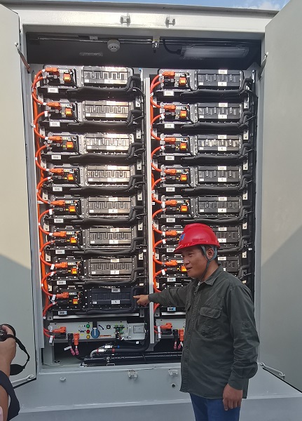 華能萊蕪電廠廠長助理安吉華向記者介紹分散控制構網(wǎng)型儲能電站